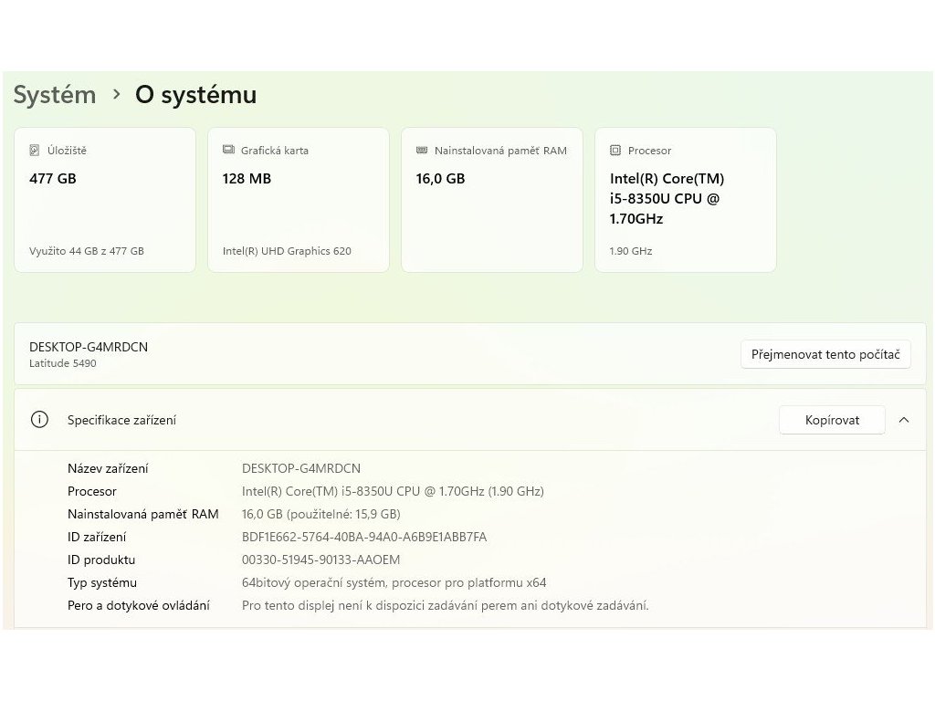 | Procesor: | Intel(R) Core(TM) i5-8350U |